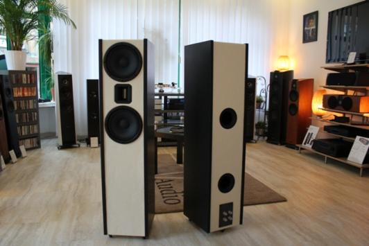 Testos: Die Luna Audio Testos ist ein außergewöhnlicher Hochwirkungsgrad-Lautsprecher mit 95dB bei 1W. Das besondere Ziel bei der Entwicklung war es einen Lautsprecher mit hoher Dynamik zu schaffen, der vollkommen ohne Wiederstände im Signalweg auskommt und trotz des Wirkungsgrad nicht mit einen PA-Hochtöner bestückt ist. Das Signal soll so frei und unverfälscht wie möglich vom Lautsprecher umgesetzt direkt zum Hörer gelangen. Die Auswahl der Chassis war somit die größte Herausvorderung, denn der Hochtöner muß bei der Trennung durch lediglich einen Kondensator ohne Anpassung mit den Tief-Mitteltönern harmonieren. Die Wahl des Hochtöner fiel auf einen außergewöhnlichen Bändchen-Horn welches in D`appolito Anordnung von zwei 21er Chassis flankiert ist. Das über 70kg schwere Gehäuse ist ein spezielles Naturstein MDF-Komposit mit farblich frei wählbaren Fronten in Straußen- oder Nappaleder- Replik Ausführungen. Je nach Wunsch können auch verschiedenste Natursteine in Granit, Schiefer und Marmor ausgewählt werden.